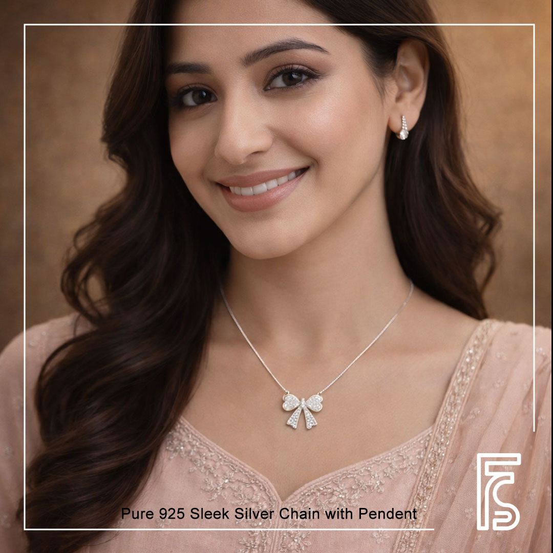 Crafted in hallmarked 925 sterling silver, this elegant chain features a delicately designed pendant that adds a subtle sparkle to your look. Lightweight, minimal, and timeless, it is perfect for everyday wear as well as special occasions. A versatile piece that complements both ethnic and modern outfits effortlessly.