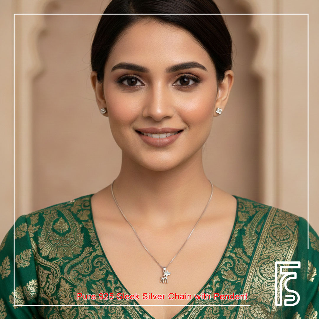 Crafted in hallmarked 925 sterling silver, this elegant chain features a delicately designed pendant that adds a subtle sparkle to your look. Lightweight, minimal, and timeless, it is perfect for everyday wear as well as special occasions. A versatile piece that complements both ethnic and modern outfits effortlessly.