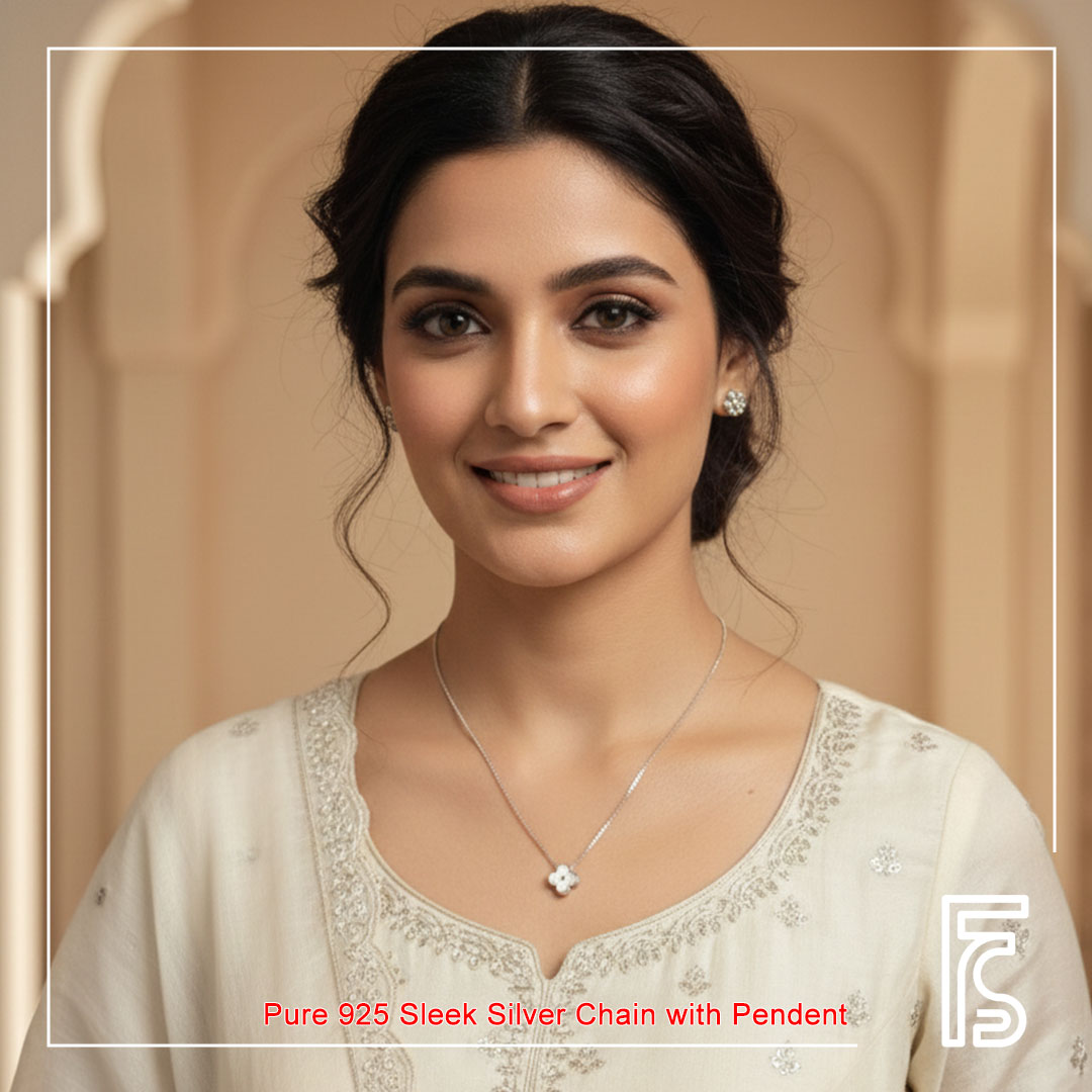 Crafted in hallmarked 925 sterling silver, this elegant chain features a delicately designed pendant that adds a subtle sparkle to your look. Lightweight, minimal, and timeless, it is perfect for everyday wear as well as special occasions. A versatile piece that complements both ethnic and modern outfits effortlessly.