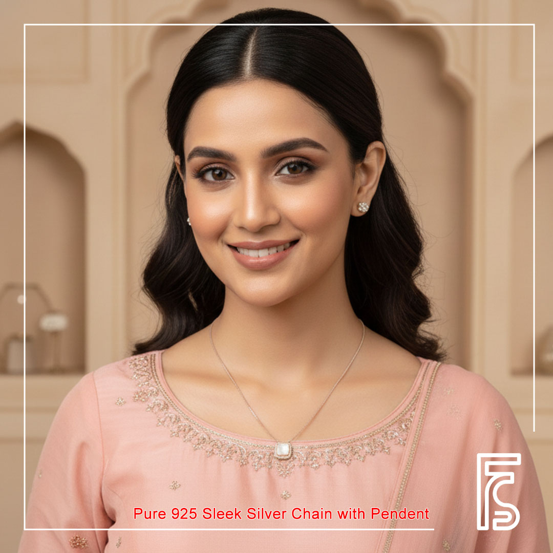 Crafted in hallmarked 925 sterling silver, this elegant chain features a delicately designed pendant that adds a subtle sparkle to your look. Lightweight, minimal, and timeless, it is perfect for everyday wear as well as special occasions. A versatile piece that complements both ethnic and modern outfits effortlessly.