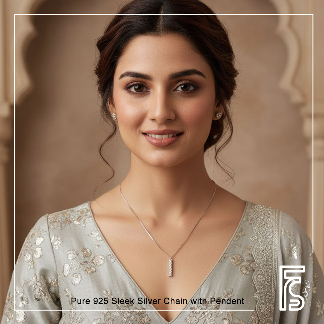 Crafted in hallmarked 925 sterling silver, this elegant chain features a delicately designed pendant that adds a subtle sparkle to your look. Lightweight, minimal, and timeless, it is perfect for everyday wear as well as special occasions. A versatile piece that complements both ethnic and modern outfits effortlessly.